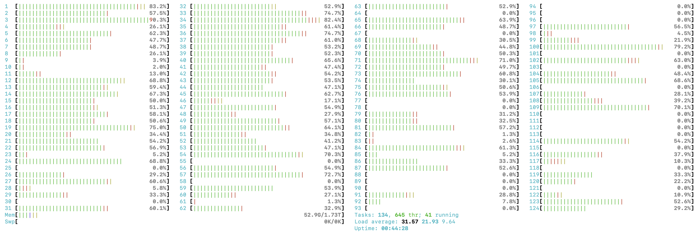 We can also check our CPU utilization with htop to be sure we are using the cores we have available.