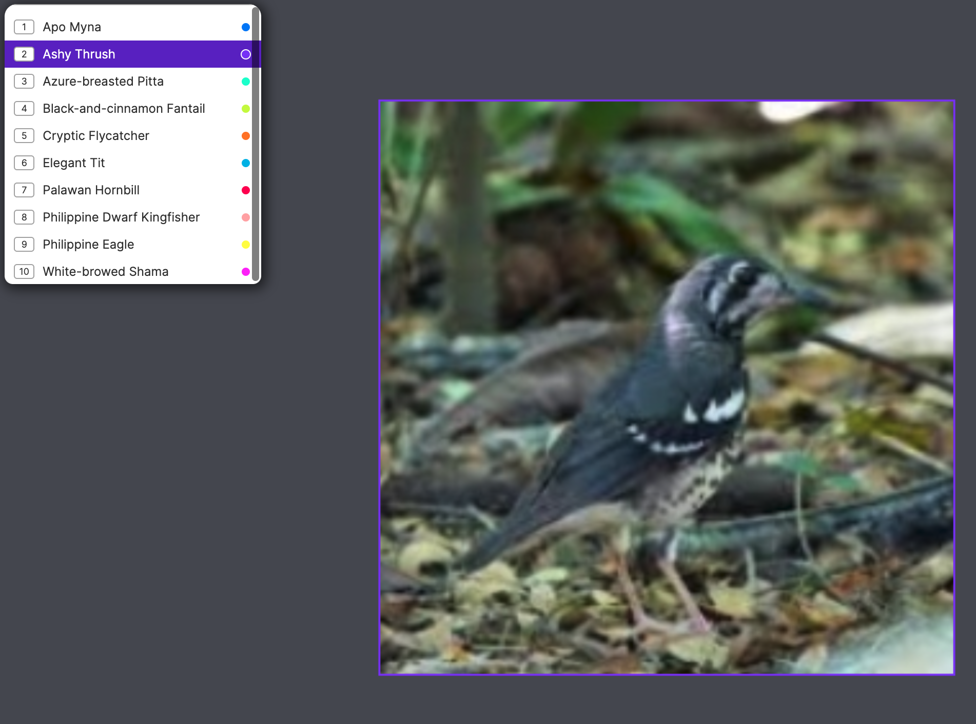 Example: A bird species classifier model on Universe