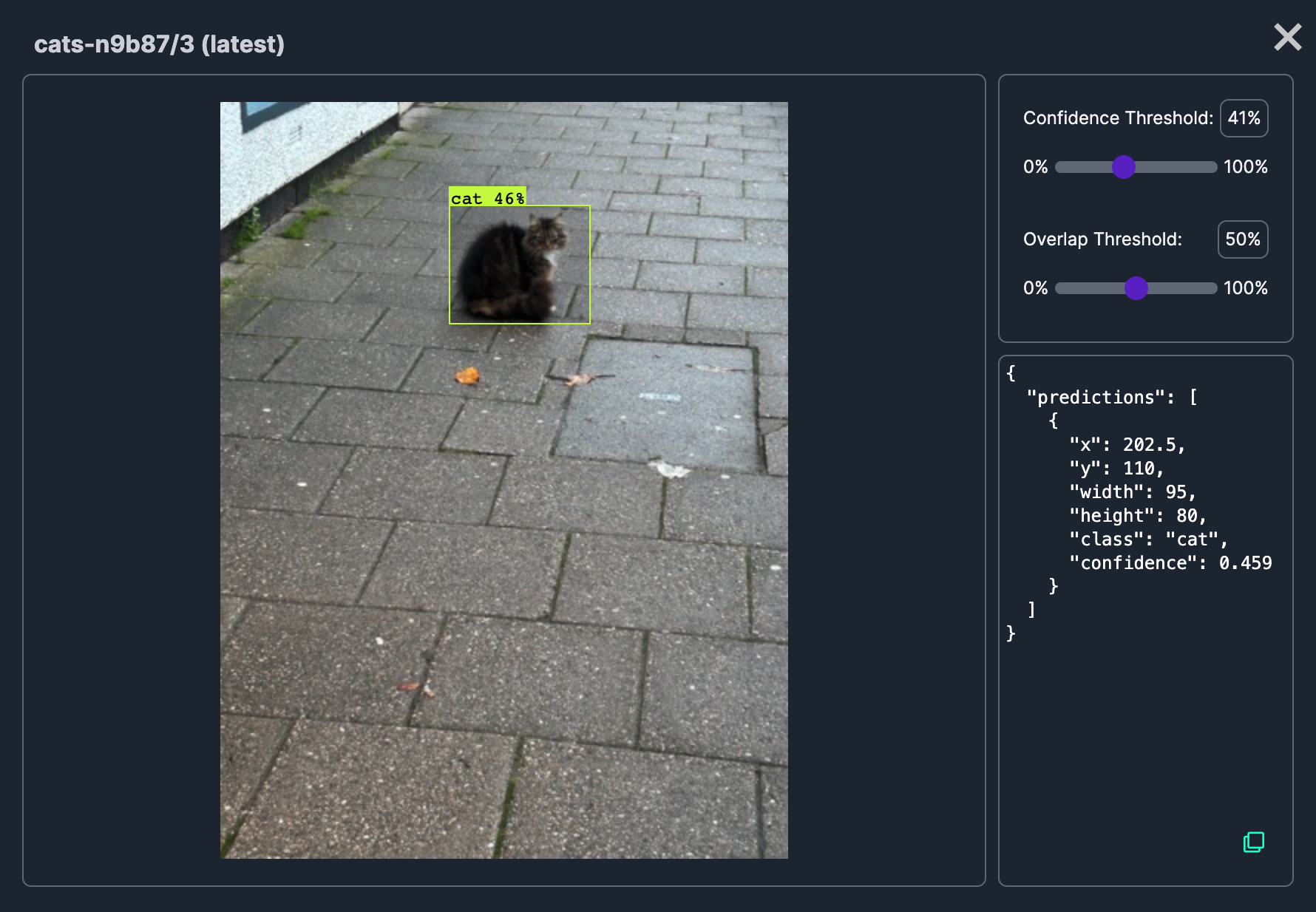 Example: A cat object detection model on Universe