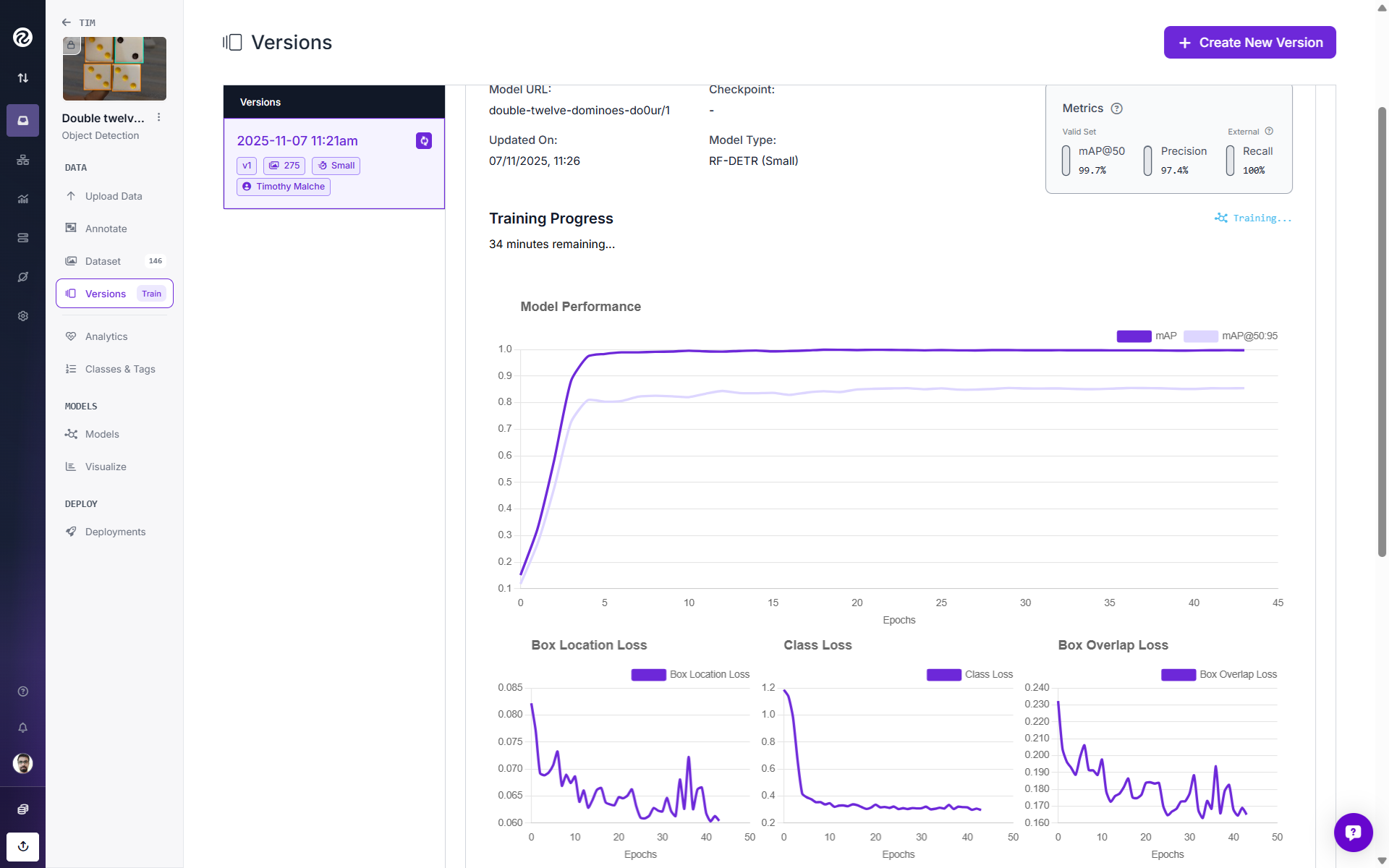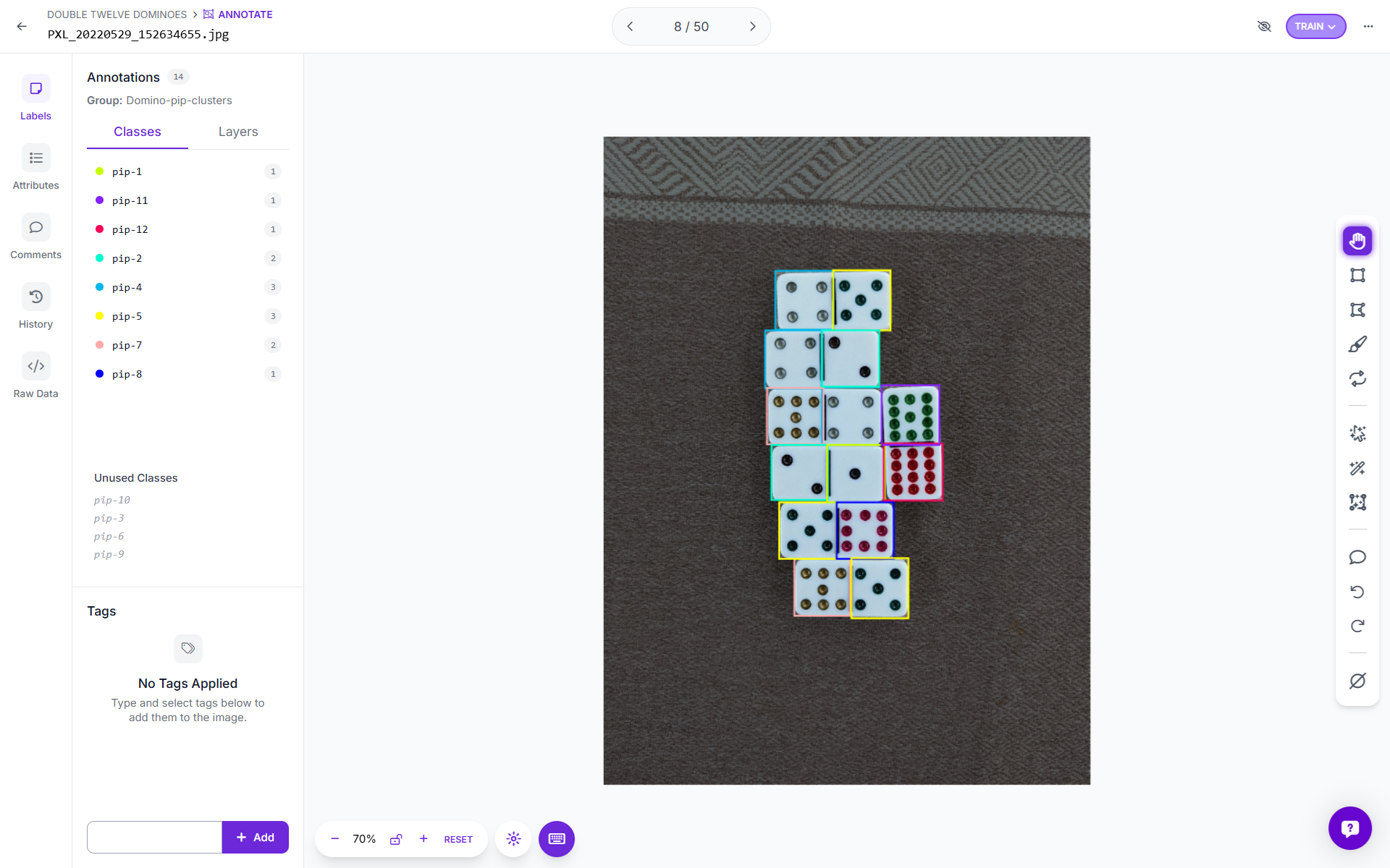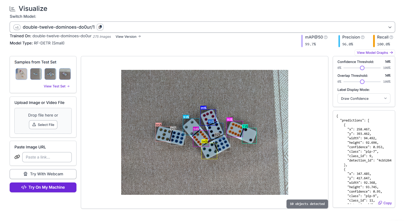 Here's how to build a custom object detector using Roboflow. This tutorial assumes you have a diverse set of images representing your use case. In this example, we will build a dominoes detection project that can be used to automated scoring, interactive learning, and game pattern analysis applications using computer vision.