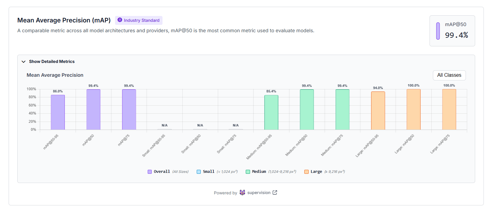Now you need to evaluate the performance of your model. Mean Average Precision (mAP) shows how accurate your model is at detecting and classifying objects.