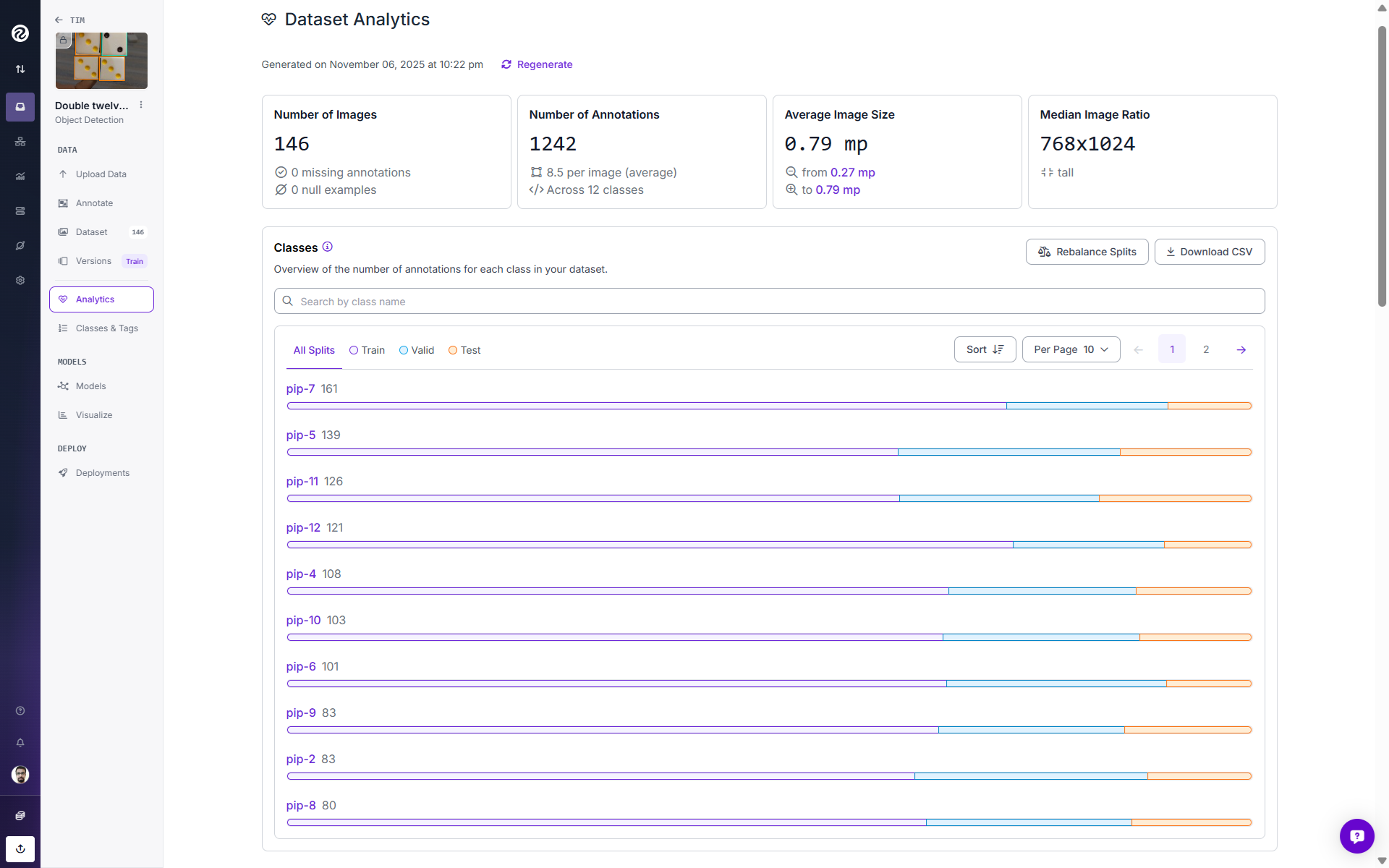 Use the “Analytics” to evaluate your dataset for improving and training a better model.