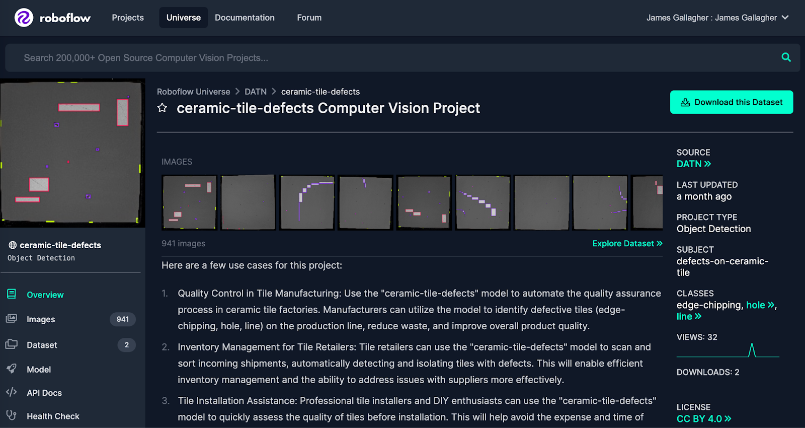 Below, we will show how to identify ceramic tile defects with a computer vision model. This model will be able to identify edge chipping, holes in the ceramic, and lines that should not be present on the tile.