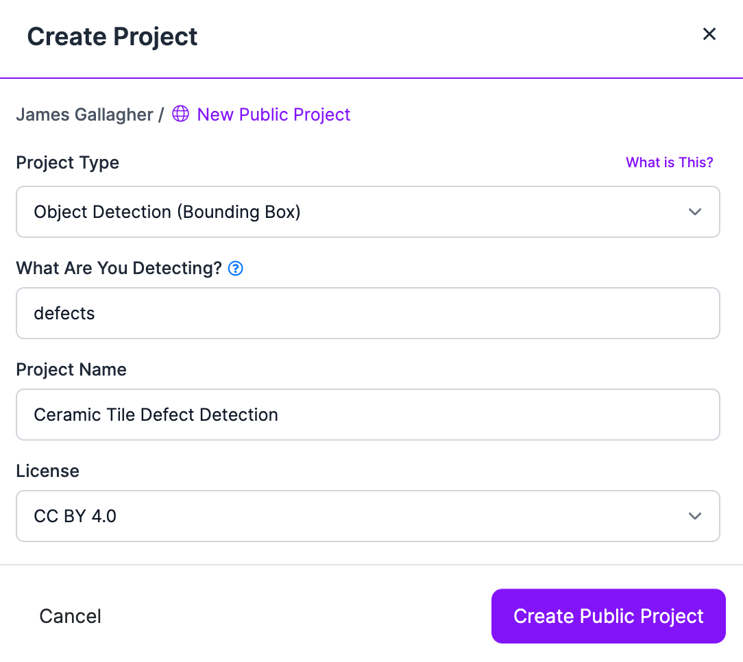 First, create a Roboflow account, then click “Create New Project” on the dashboard: