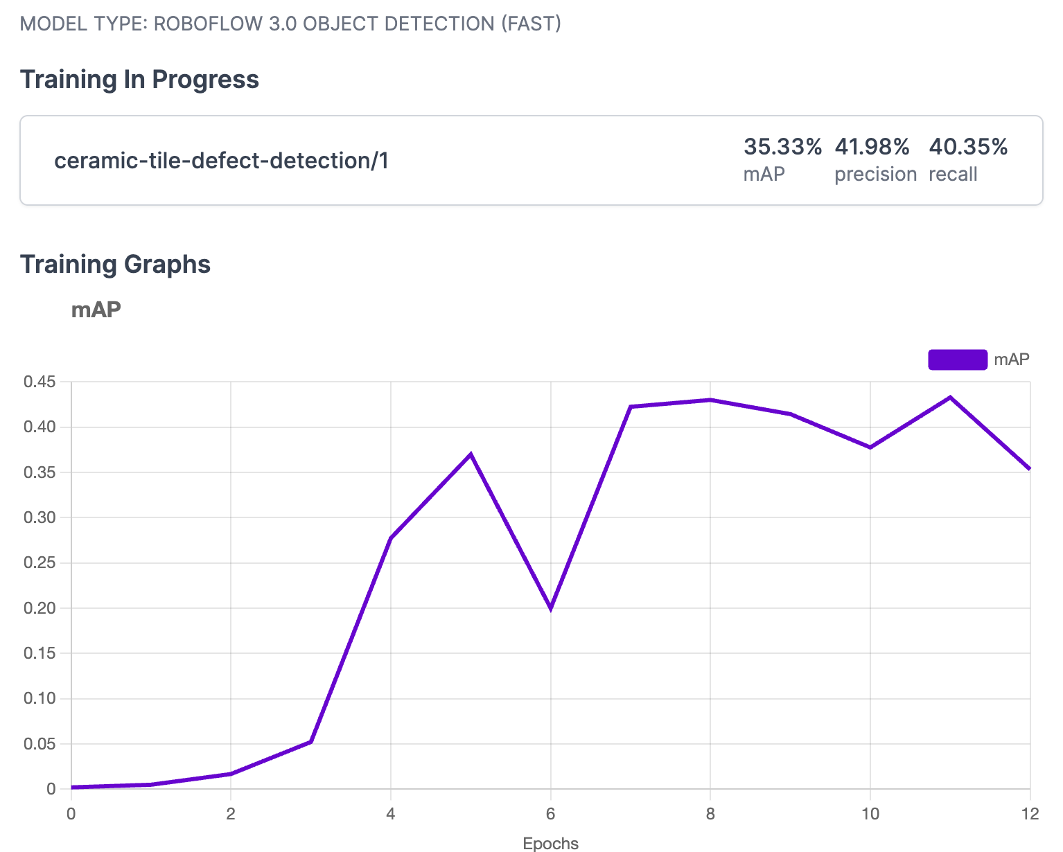 Generating a dataset version can take a few minutes depending on how large your dataset is. Once you have created a dataset version, you can train the first version of your defect detection model. We’re one step closer to identifying ceramic tile defects using computer vision.