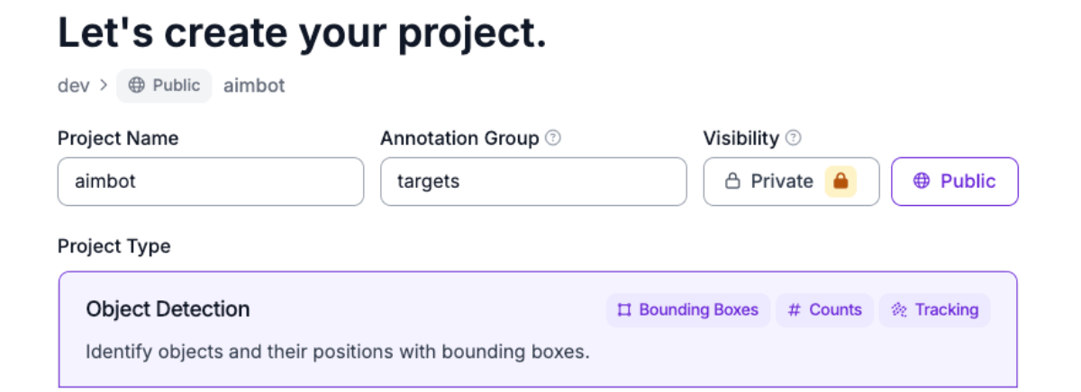 With this, we’re able to train an object detection model with Roboflow. In Roboflow, sign in/create a new account, then inside of a workspace, create a new project: