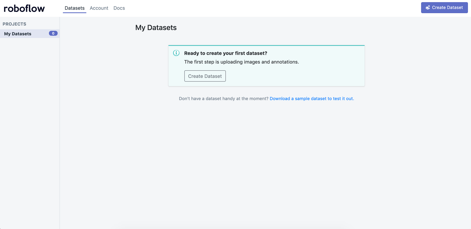 Click "Create Dataset" and give your dataset a name and describe all your annotation groups (for example, the BCCD dataset would be "cells").