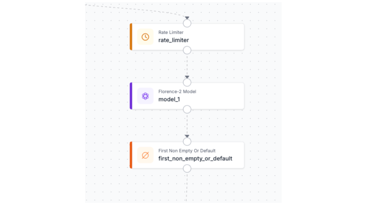 - Captioning model: Florence-2 is used here as a concrete example, but this block is interchangeable. Claude, Gemini, GPT-4o, or any other VLM supported by Roboflow Workflows slots in without changing anything else in the pipeline. The choice of model depends on your deployment constraints.