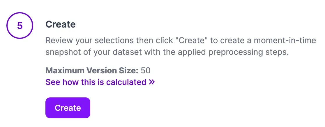 Click “Create” at the bottom of the page to create your dataset version: