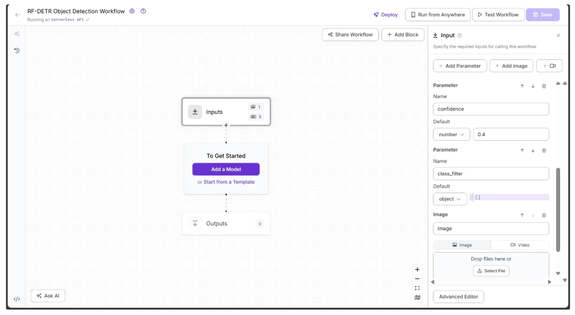 We’ll be using Roboflow Workflows, a web-based tool for building visual AI applications, to create our object detection workflow utilizing RF-DETR.