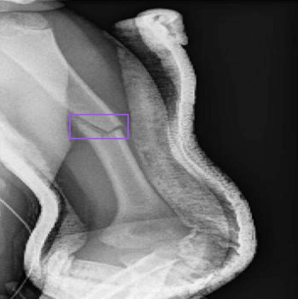 {'image': 'n_0_2513_png_jpg.rf.1f679ff5dec5332cf06f6b9593c8437b.jpg', 'prefix': 'detect fracture', 'suffix': '<loc0390><loc0241><loc0472><loc0440> fracture'}In the prompt, pay attention to the keyword detect followed by a list of classes we want to `detect`, separated by semicolons. The expected detection result is described by a bounding box in '<loc{Y1}><loc{X1}><loc{Y2}><loc{X2}>' and the class name. The values X1, Y1, X2, and Y2 describe the location of the bounding box, normalized to an image size of 1024x1024. Each value should have 4 digits; if a coordinate is shorter, it is padded with zeros.