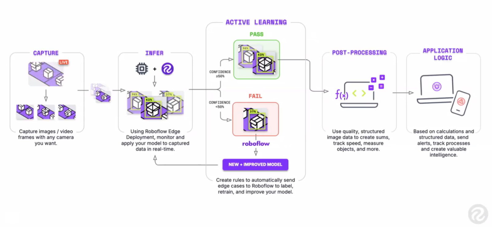 Roboflow is built around this closed-loop approach. From verified metrics and visual model comparison to production inference monitoring, active learning, retraining, and automated workflows, every part of the platform is designed to keep vision systems reliable long after deployment. Get started today.