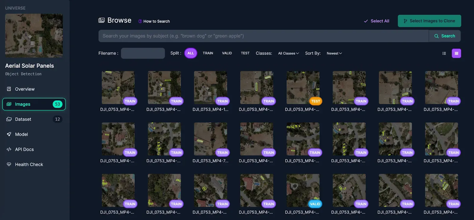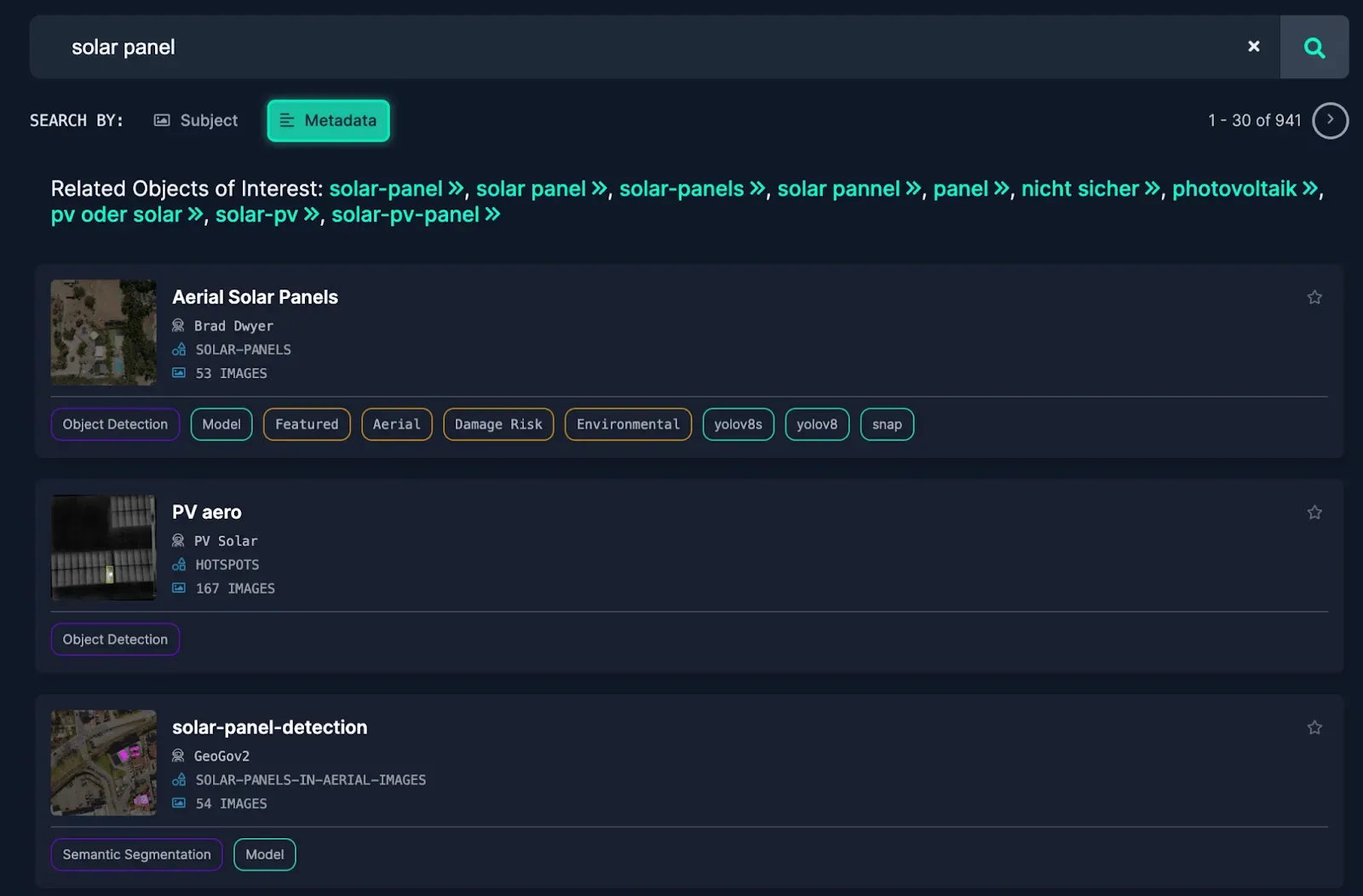 You can search for images using a text query (i.e. “solar panel”).