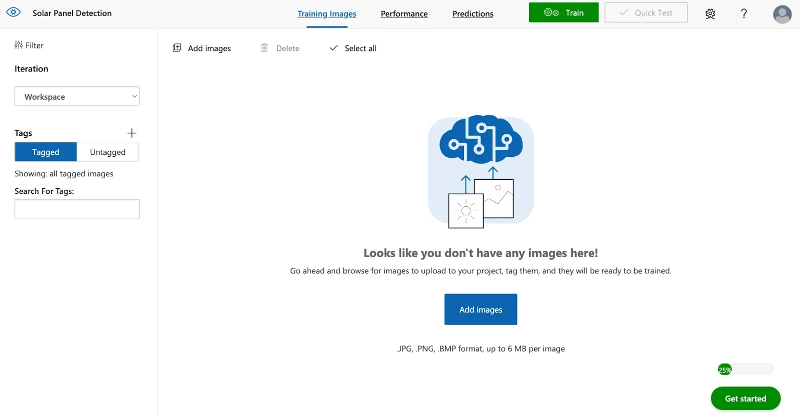 Go to the project you created in Custom Vision. Click the “Add images” button and upload the images you want to annotate.