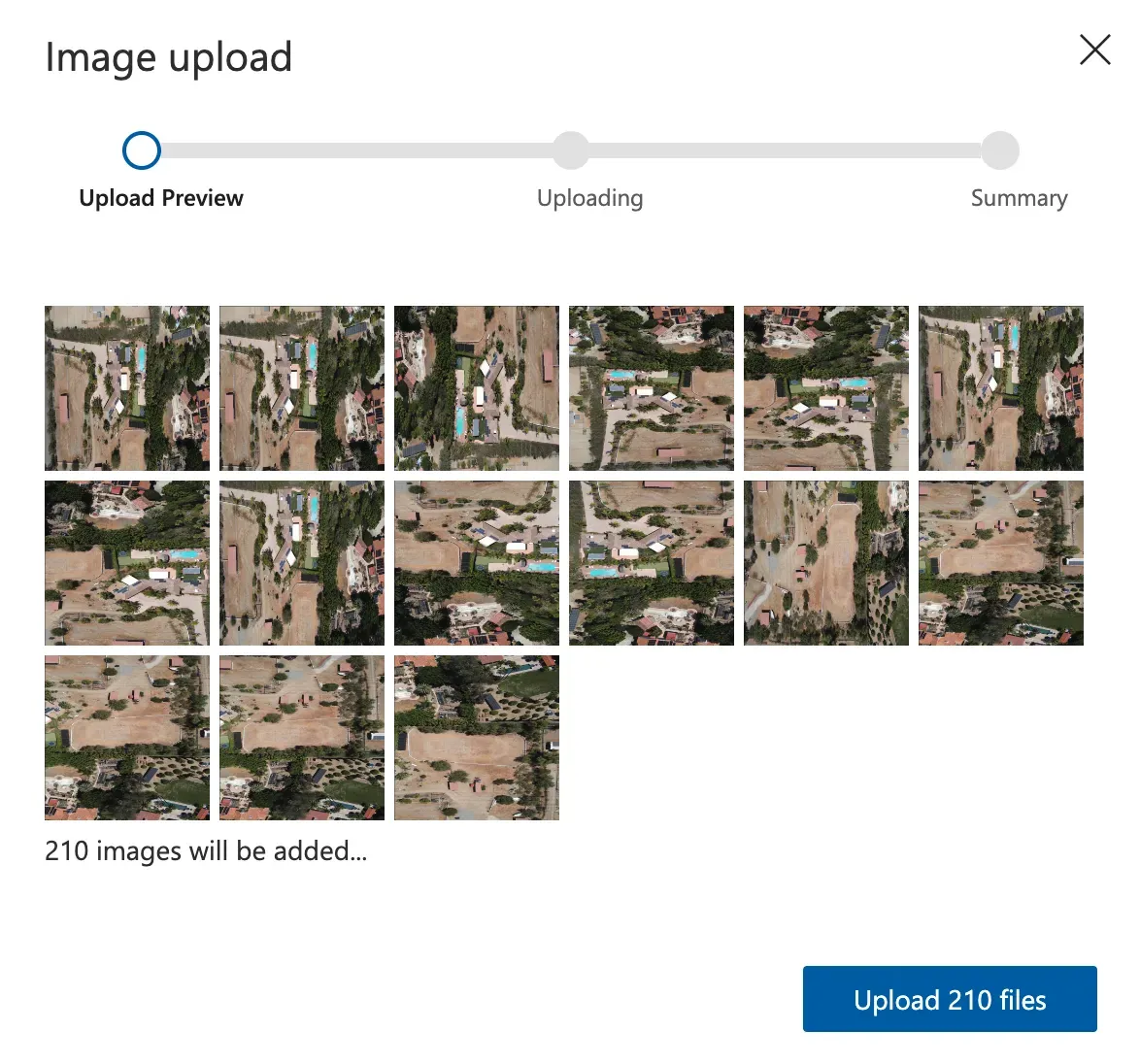 Once you have selected images to upload, a preview window will appear showing some of the images you have uploaded. Click the “Upload files” button to upload your images.