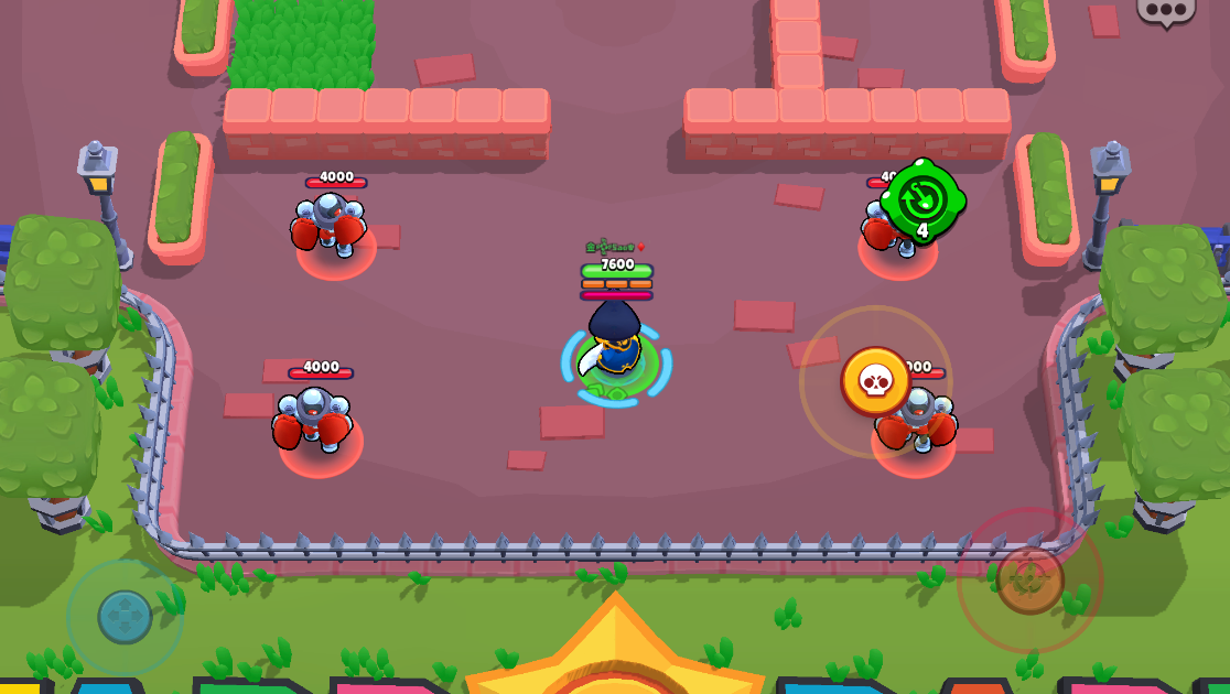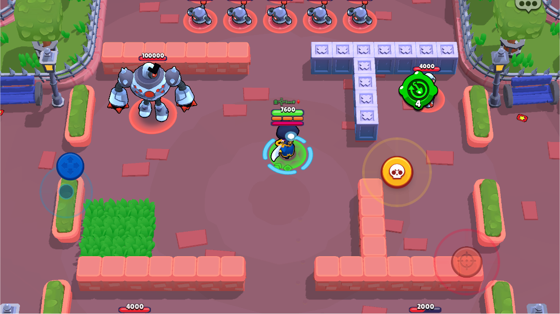Brawl stars is a game with three main buttons: movement (blue), attack (red), and special attack (yellow).