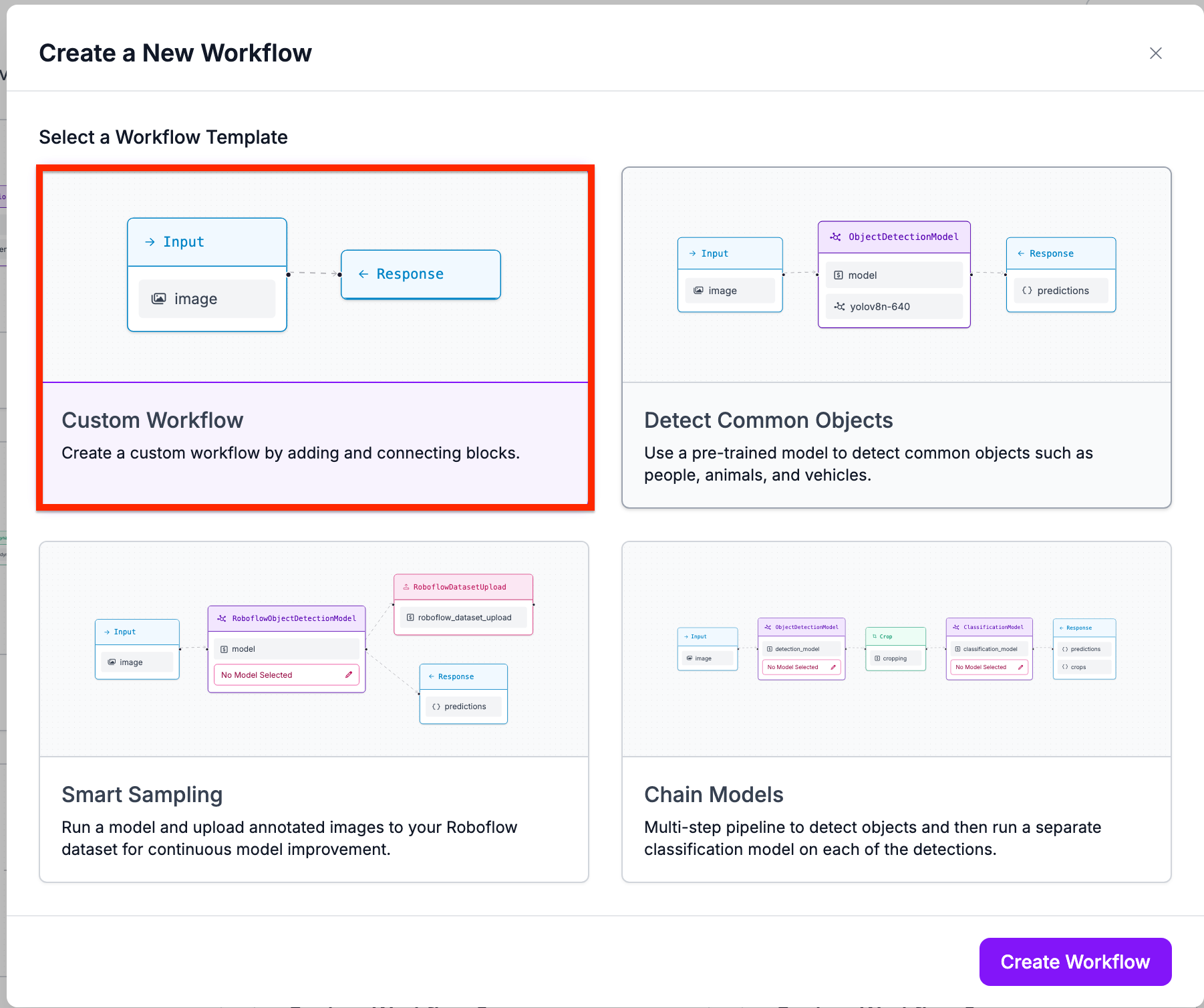 Using the model we created, we can use Roboflow Workflows, a low-code tool for building computer vision applications.