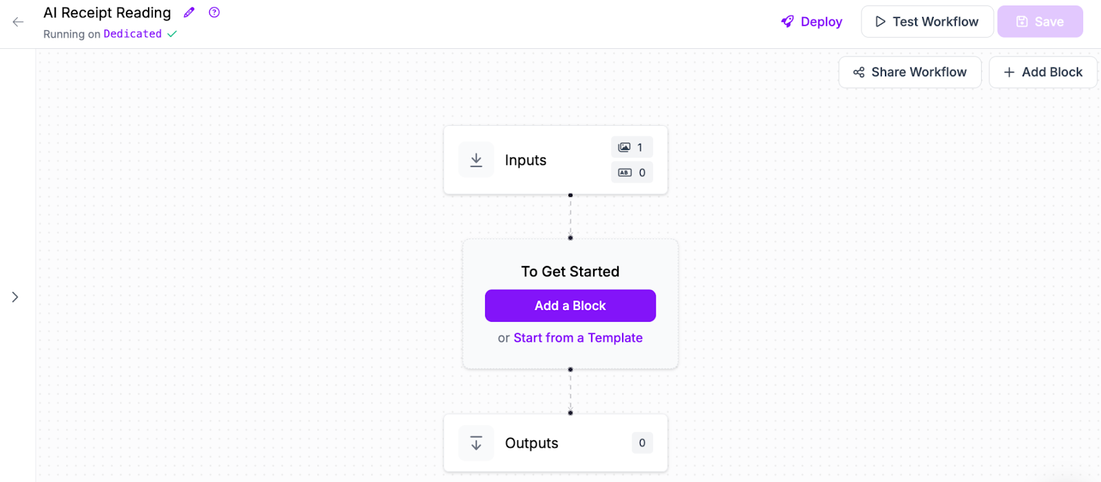 You will be taken to a blank Workflow editor: