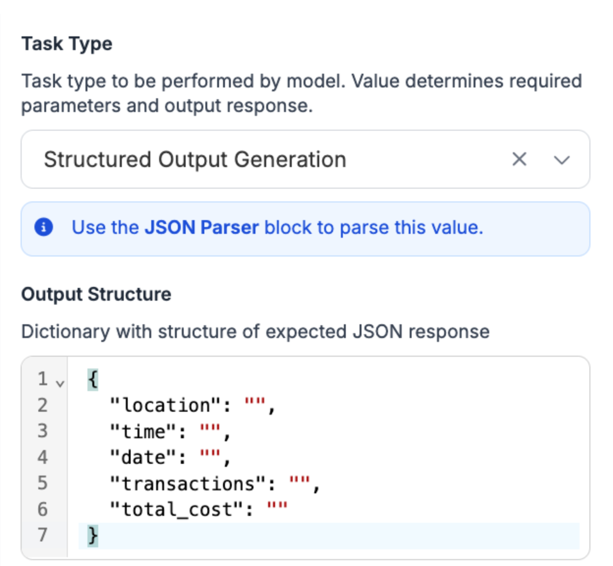 }This will be sent to GPT when our Workflow runs to say exactly what information we want to retrieve, and in what structure.
