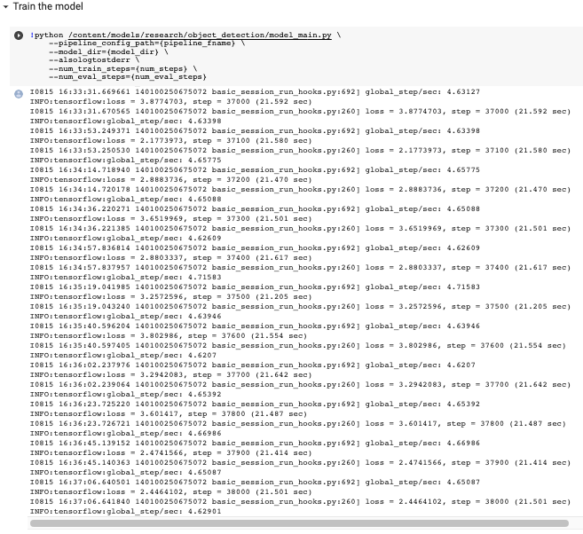 We will not dive deeply into details here. To learn more about training, refer to the tutorial to train MobileNet and provided MobileNet Object Detection Colab Notebook.