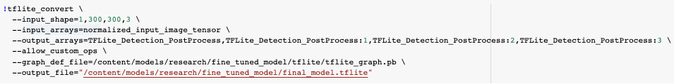 In this tutorial, we will train an object detection model on custom data and convert it to TensorFlow Lite for deployment. We’ll conclude with a .tflite file that you can use in the official TensorFlow Lite Android Demo, iOS Demo, or Raspberry Pi Demo.