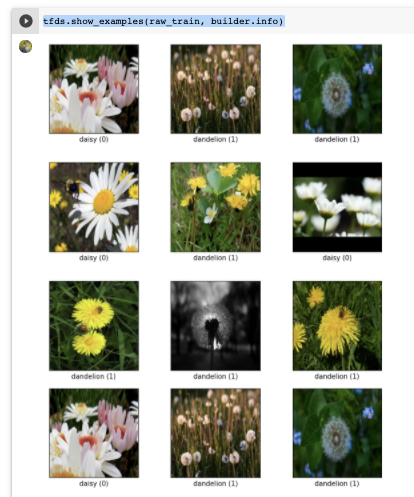 You will see your custom data properly load in with the following command tfds.show_examples(raw_train, builder.info).