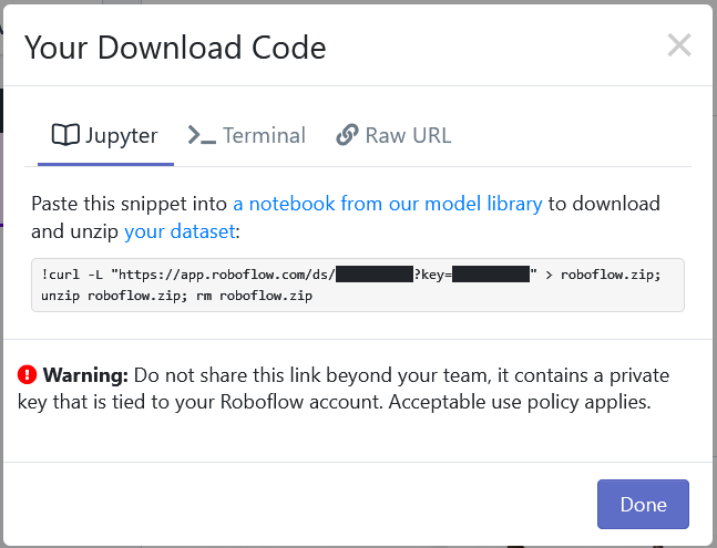 !curl -L "https://app.roboflow.com/ds/[YOUR-KEY-HERE]" > roboflow.zip; unzip roboflow.zip; rm roboflow.zip