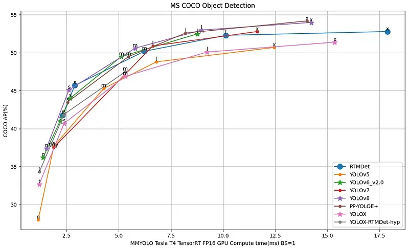 RTMDet is an efficient real-time object detector, with self-reported metrics outperforming the YOLO series. It achieves 52.8% AP on COCO with 300+ FPS on an NVIDIA 3090 GPU, making it one of the fastest and most accurate object detectors available as of writing this post.