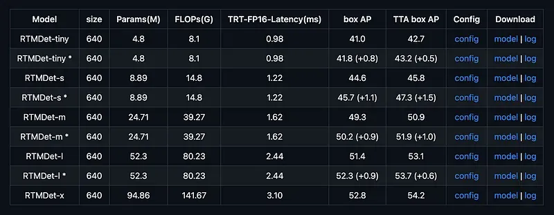 Figure 5. A collection of configuration files and pre-trained weights for different versions of the RTMDet model.