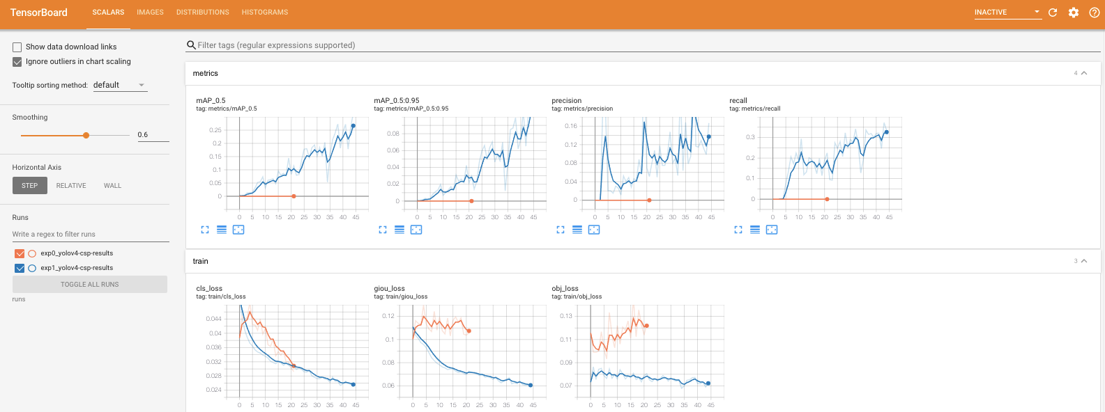 After training, you can take a look at your Tensorboard metrics, again focusing on the mAP: