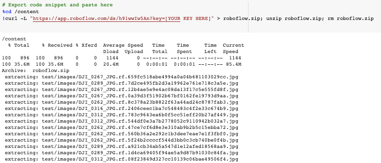 Finally, import your curl link from Roboflow to bring in your data in the right format.