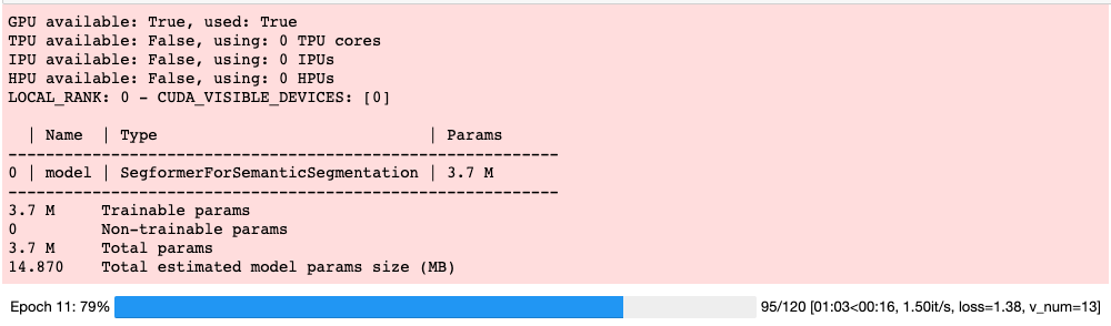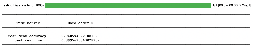 trainer.fit(segformer_finetuner)After running trainer.fit your output should look something like this: