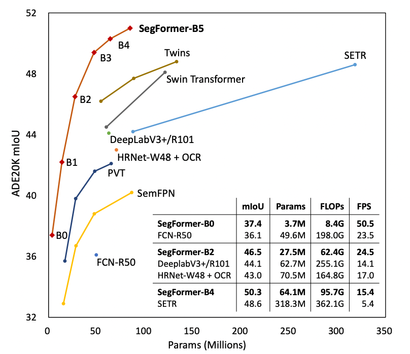 With ViT as a backbone showing great promise, various papers began to build on the idea and innovate to address issues of low resolution and high computational cost. And, while performance continued to improve with each new method, these papers seemed to focus solely on the design of the transformer encoder and neglected the decoder. Enter SegFormer. SegFormer sets itself apart with (Credit: Xie):