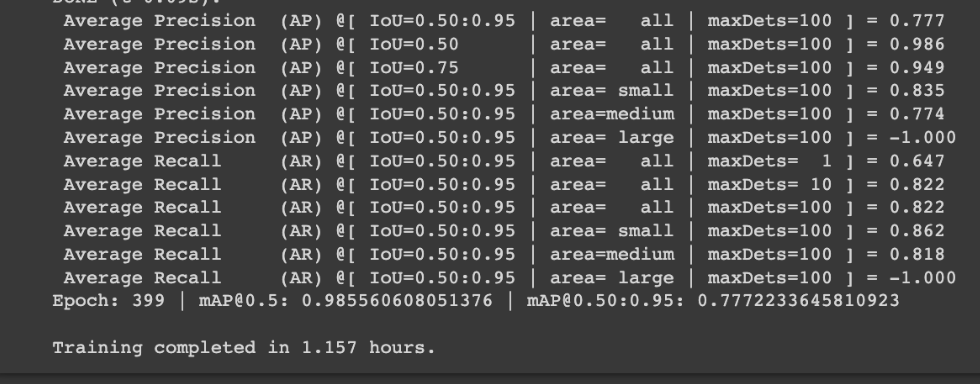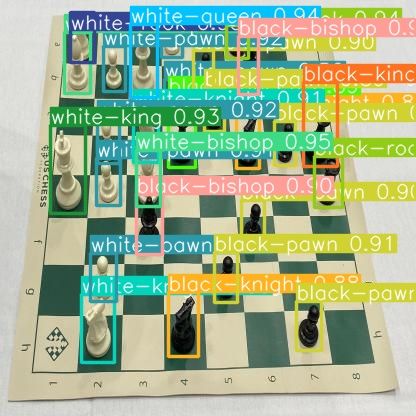 When our chess piece detection model finished 400 epochs in 1.157 hours, it posted a mAP@0.50 of 0.985 (comparable to YOLOv5 on the same dataset for those wondering – indicating this task is maxing out performance).