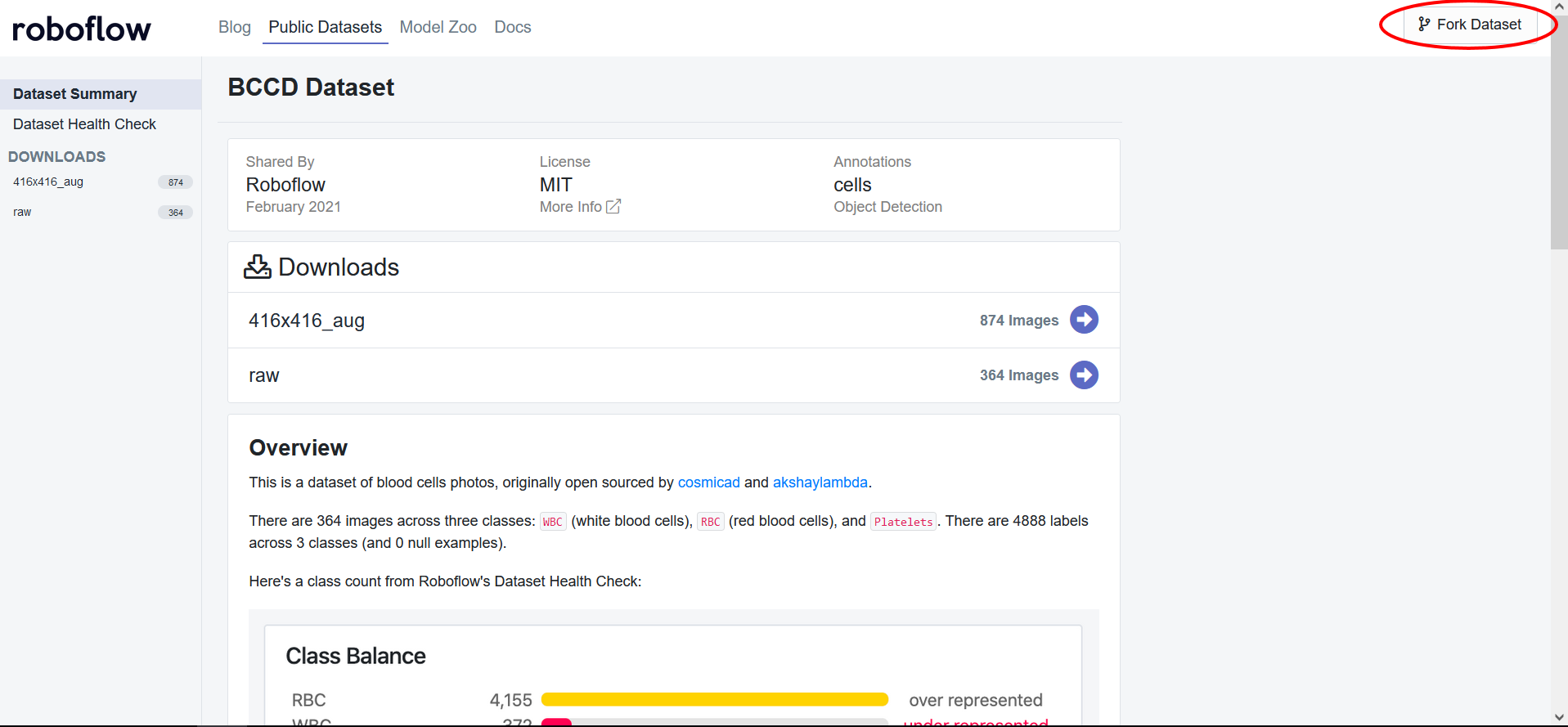 To retrieve the required data, you will need to create a Roboflow account. We will be using this blood cells dataset but you are welcome to use any dataset whether it be your own dataset loaded into Roboflow or another public dataset.