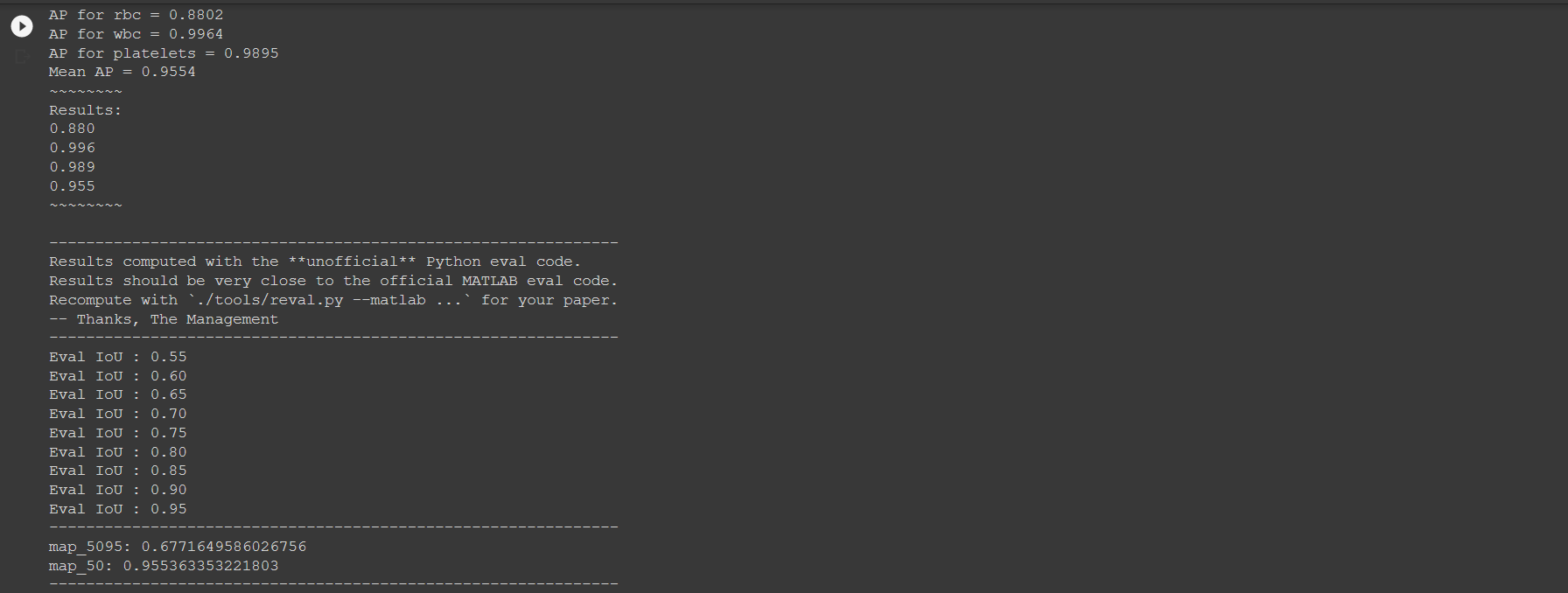 The above image shows that we get a 0.955 mAP. That's a strong result.