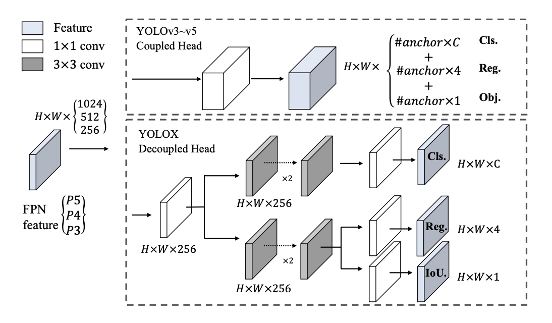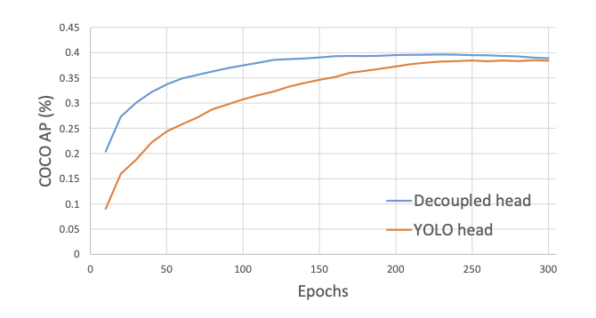 - Decouples the YOLO detection head into separate feature channels for box classification and box regression, which improves training convergence time and model accuracy.