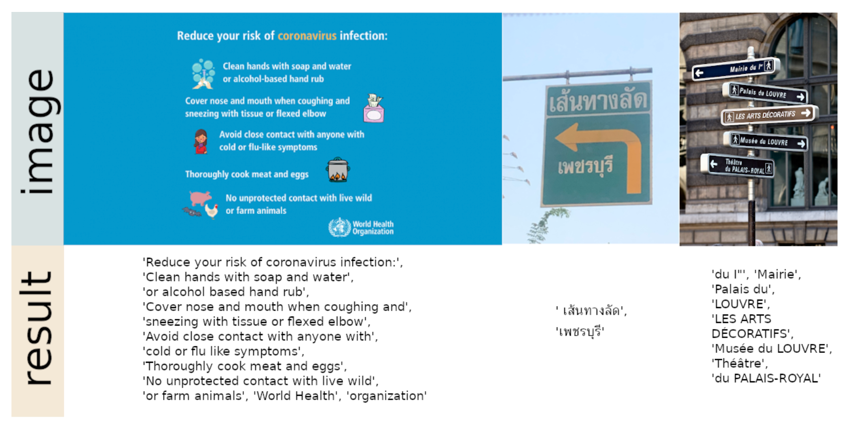 print(result)This would be the printed result for our input image. The extracted texts are now grouped together.