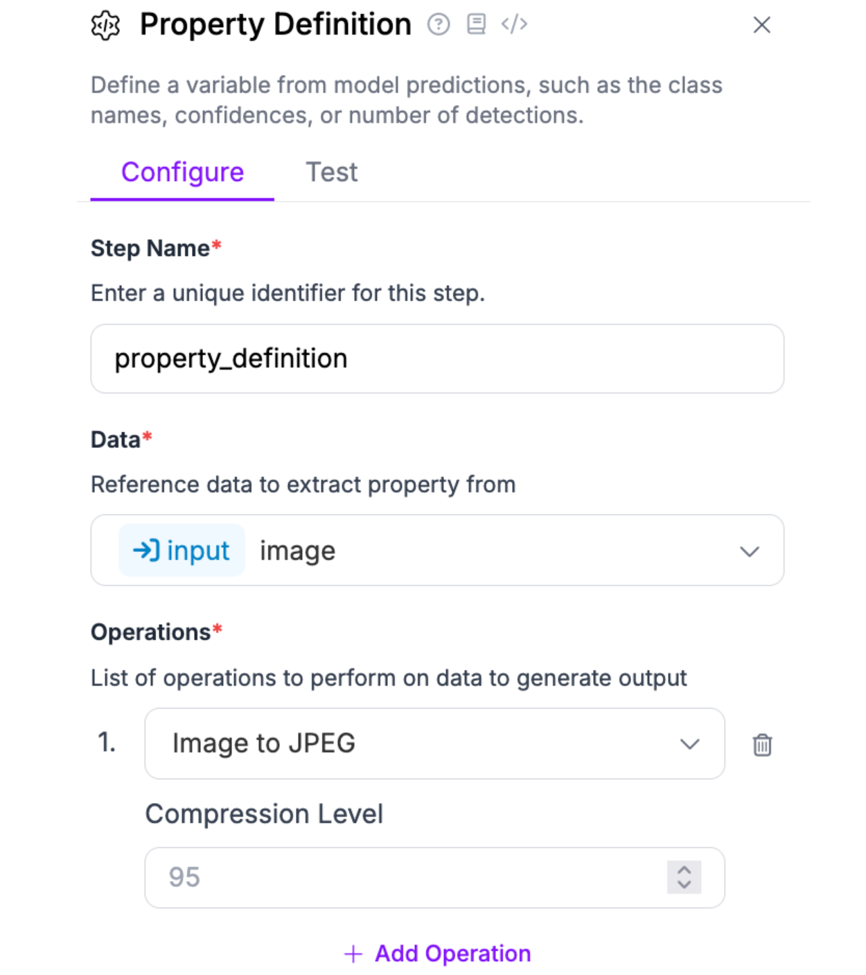 - Property Definition, which we will use to take our input image and convert it into a JPEG that can be sent to Slack.