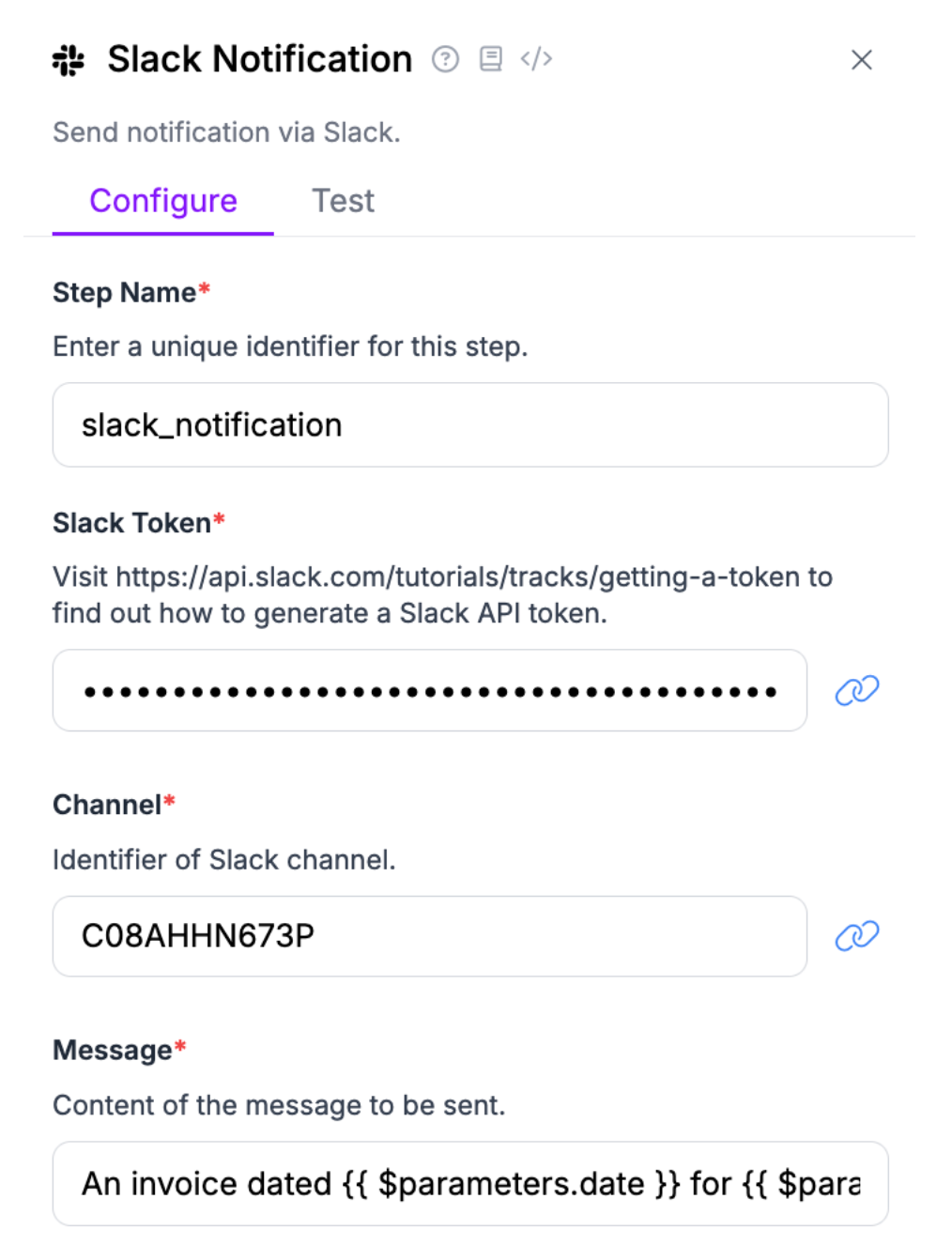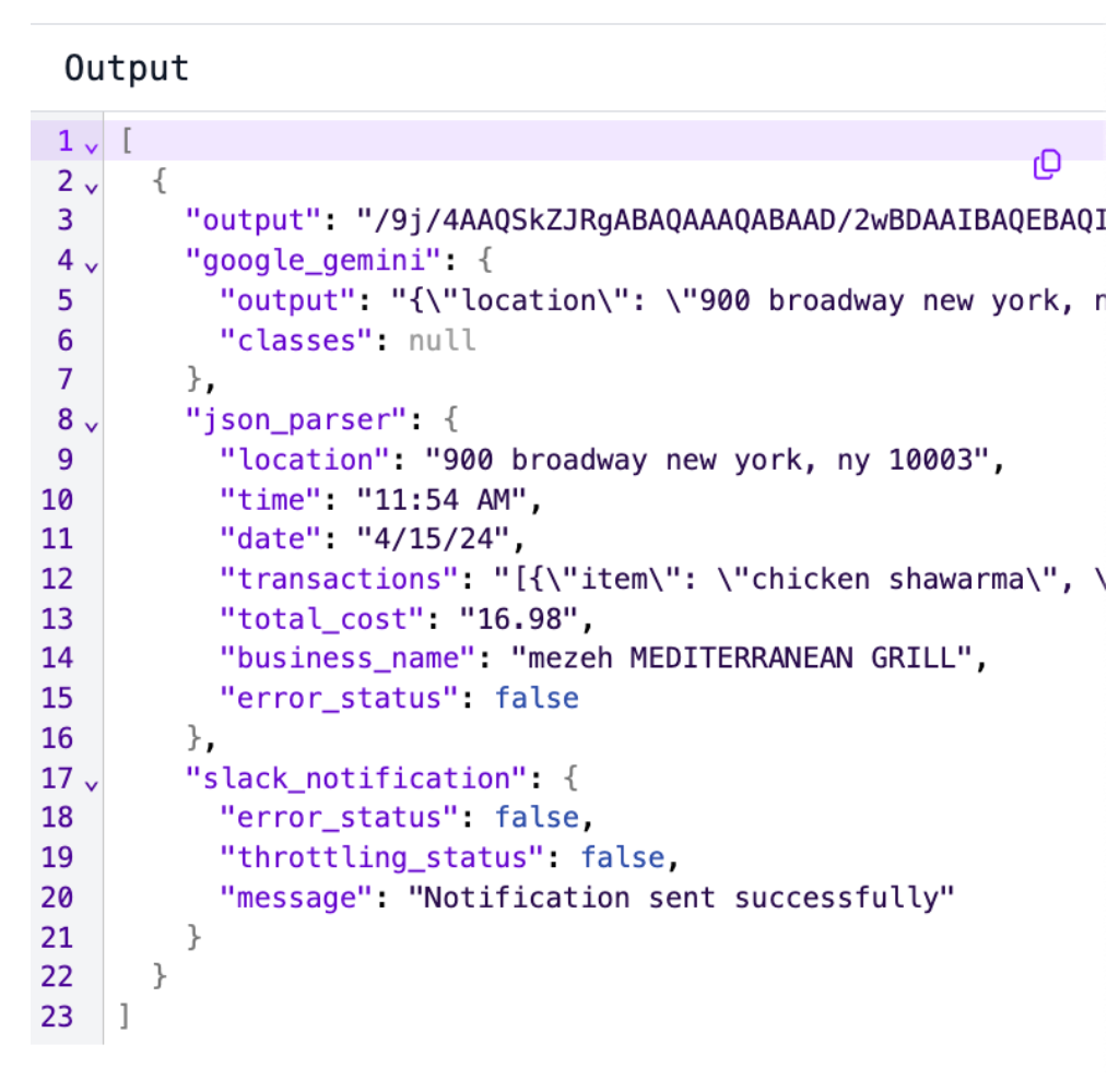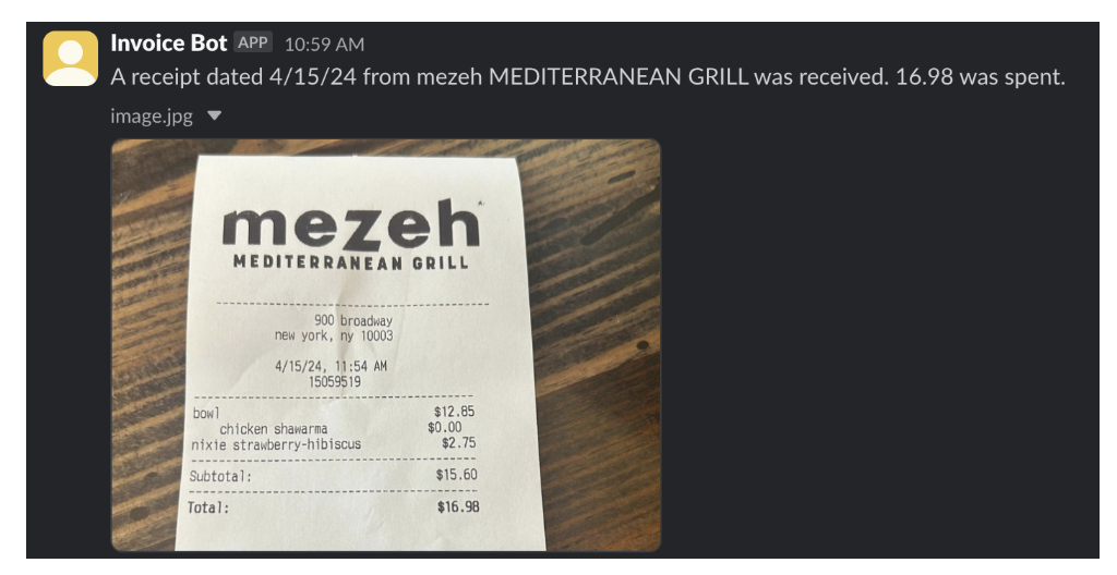 With our invoice reading system ready, we can start to build custom logic that uses the results from the invoice OCR step. For example, we can send a notification to Slack with the results from our system.