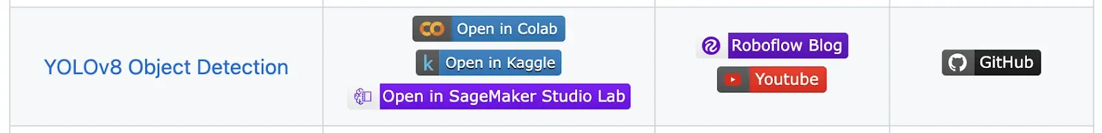 Roboflow has many (28+) notebooks for training state-of-the-art computer vision models like Ultralytics YOLOv8, SAM, CLIP, and RTMDet. We make these notebooks available to use on various notebook platforms like Google Colab and Amazon SageMaker Studio Lab, as well as Kaggle.