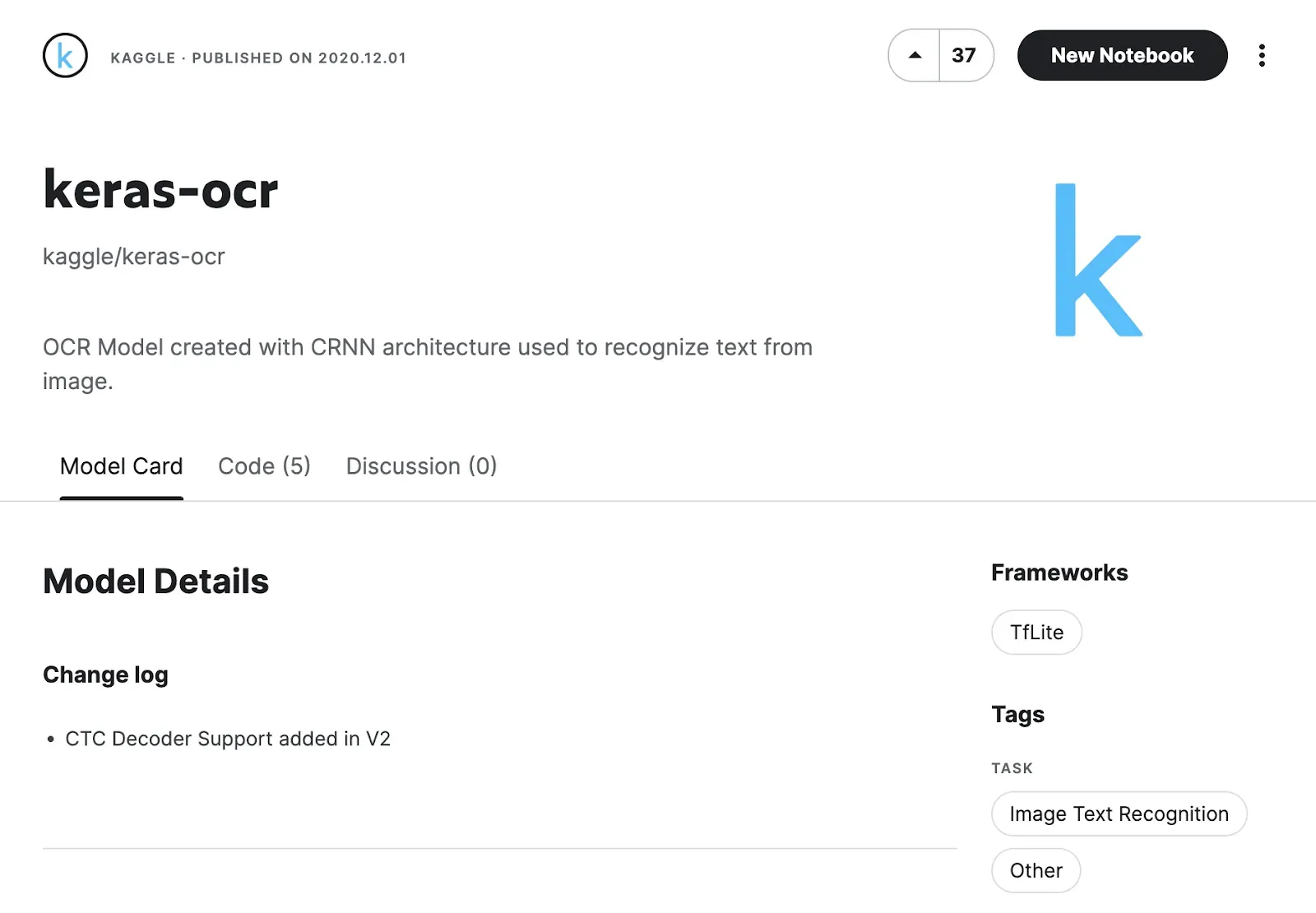 It will open a Kaggle notebook, where you can configure the model. The model will be imported to the kaggle/input folder, the same location as the datasets. For this example keras-ocr model, it will go to /kaggle/input/keras-ocr/tflite/dr/2/2.tflite.