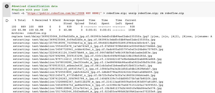 The next step is to download your classification dataset into Colab.