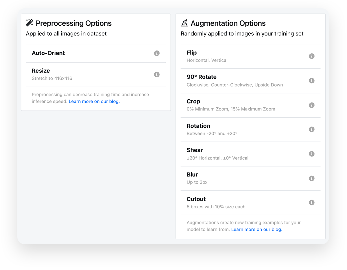 With the blood cell count dataset I’m using, I chose the following preprocessing and augmentation options: