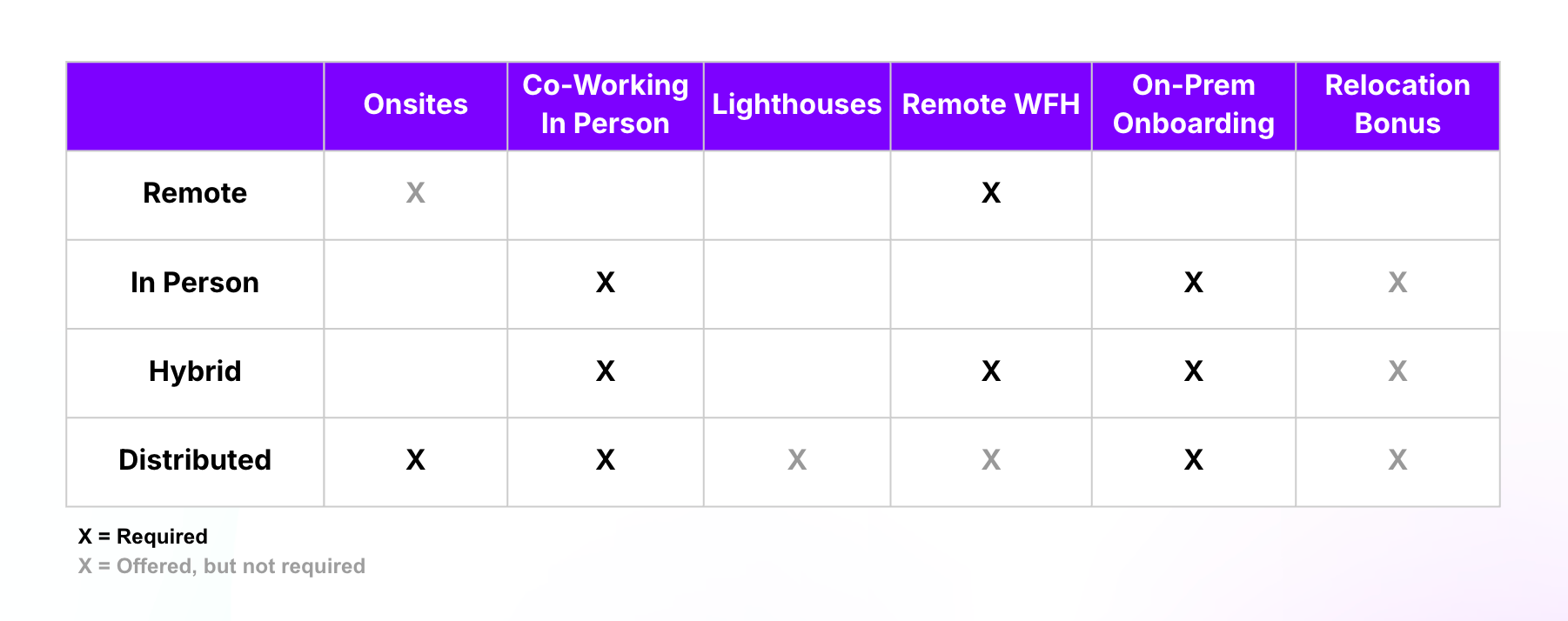 This only works if the experience is cohesive. There is no distinction between “remote” and “in-person” employees. We invest in both equally and design how we work so that everyone has access to the same context, opportunities, and ability to contribute.