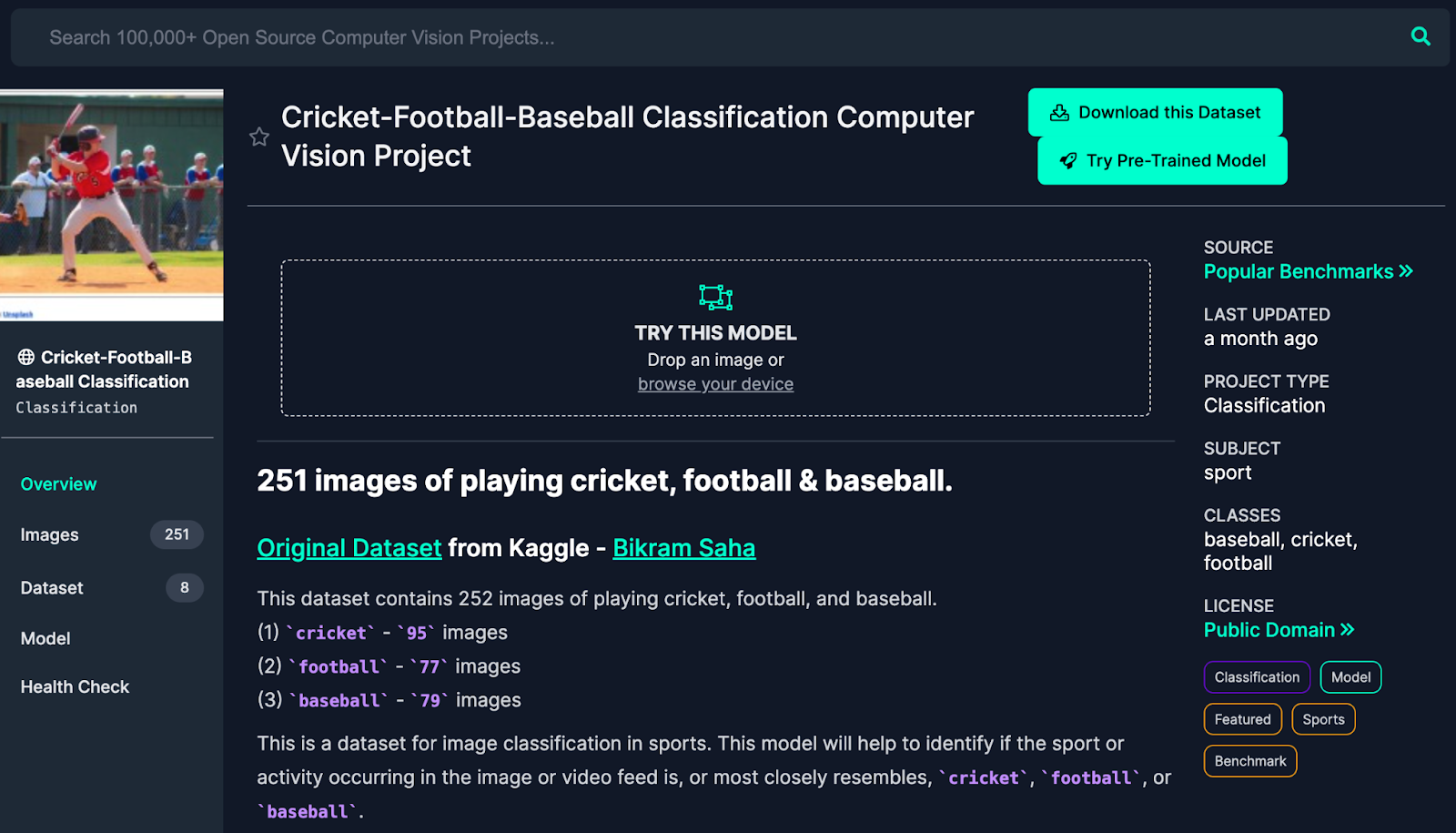 Let’s start by copying a sports classification dataset from Roboflow Universe, our repository of more than 100,000 open source datasets: