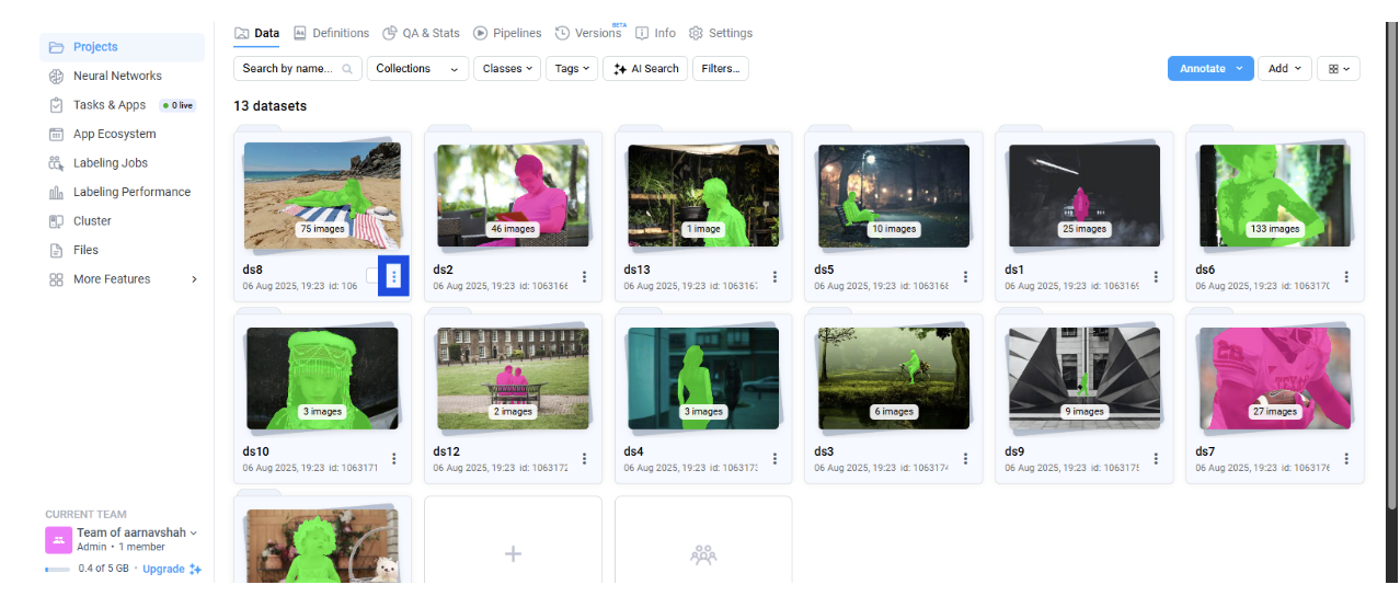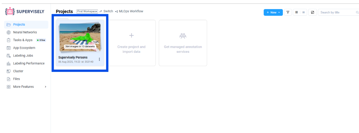 Access Your Projects: From the Supervisely homepage, locate the “Projects” section in the left sidebar. Click on your project containing the Persons dataset. If you’re using a public dataset, you may need to import it into a new project first.
