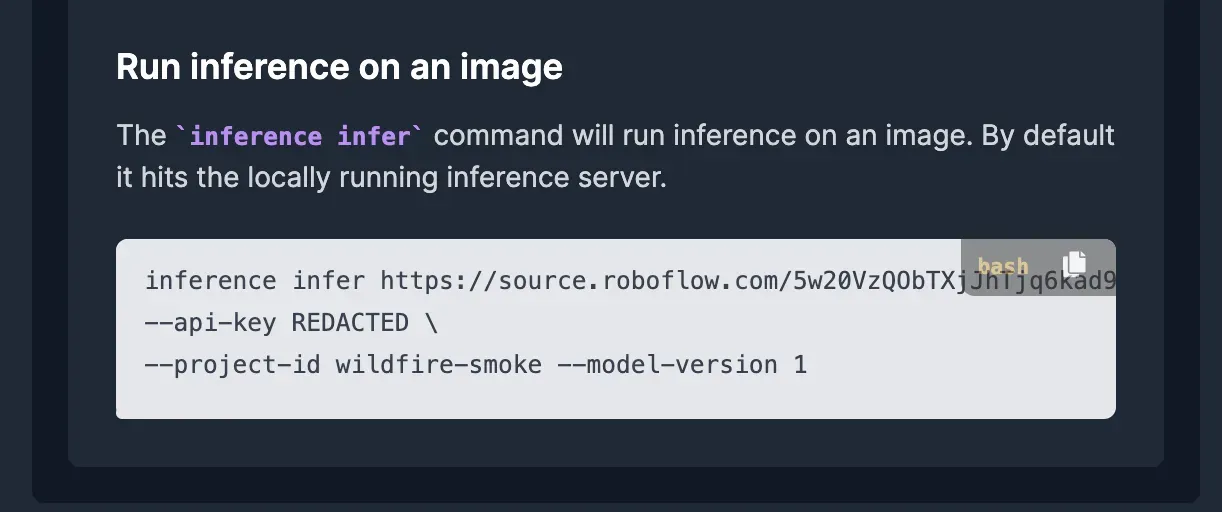 Scroll down to “Run inference on an image”, and copy the bash command.
