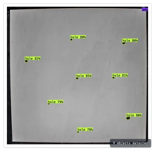 For example, consider an object detection model trained to identify defects in bottle tops. “Running inference” on this model would mean to run the model on an input image. The model will then return “bounding boxes” which correspond to the location of objects in the image that the model has been trained to identify.