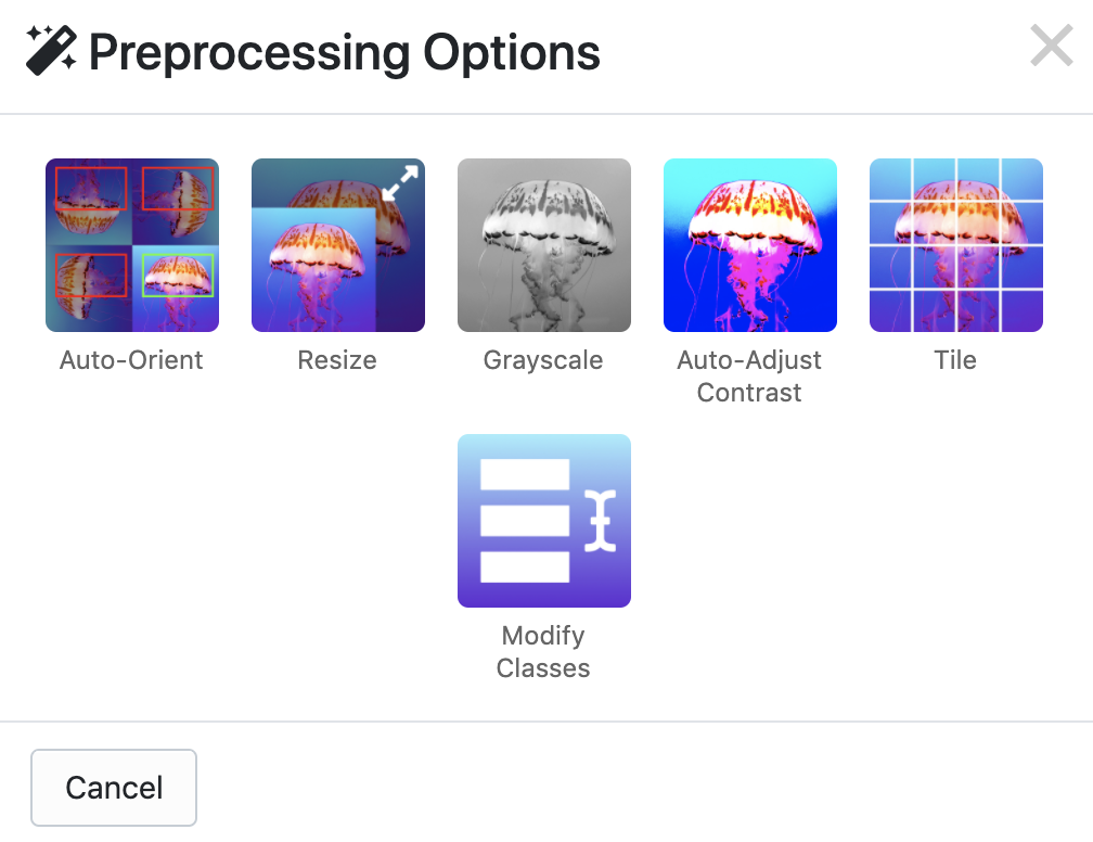 Within the Roboflow platform, navigate to your dataset's page, proceed to Generating a new version by selecting Generate New Dataset and click to Add Preprocessing Step.